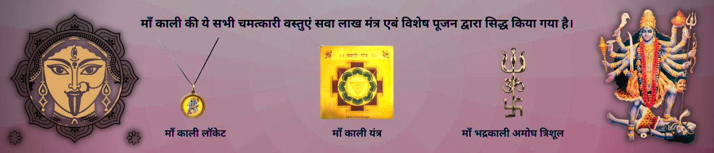 माँ बग्लामुखी श्रीवृद्धि ज्योतिष संस्थान आपके कल्याण हेतु दश महाविद्याओं में सर्वप्रथम महाविद्या माता " काली " की आराधना लेकर आए हैं, तंत्र, तथा अघोर की अधिष्ठात्री देवी माता काली के श्री चरणों में हम प्रणाम करते हैं, माता काली सत्, रज, तम, त्रिगुणात्मयी हैं तथा तीन नेत्रों वाली हैं जो भक्त माता काली की पवित्र आचरण से आराधना करता है बह समय से पूर्व ही सिद्धि, शक्ति, तथा भक्ति को प्राप्त कर लेता है, जो भक्त माता काली के कवच इत्यादि के 11 हजार पाठ कराता है उसके समस्त रोग इत्यादि का अतिशीघ्र नाश हो जाता है, तथा जो भक्त श्री ( लक्ष्मी ), संपत्ति, न्यायालय संबंधित कार्य, संतान प्राप्ति, प्रेम संबंधित कार्य, वशीकरण, इत्यादि कार्य के लिए यदि 1,25,000 पाठ का अनुष्ठान कराता है तो उसे इस सृष्टि के समस्त सुखों का भोग भोगकर अंत में भगवती के श्री चरणों में विलीन होता है।
